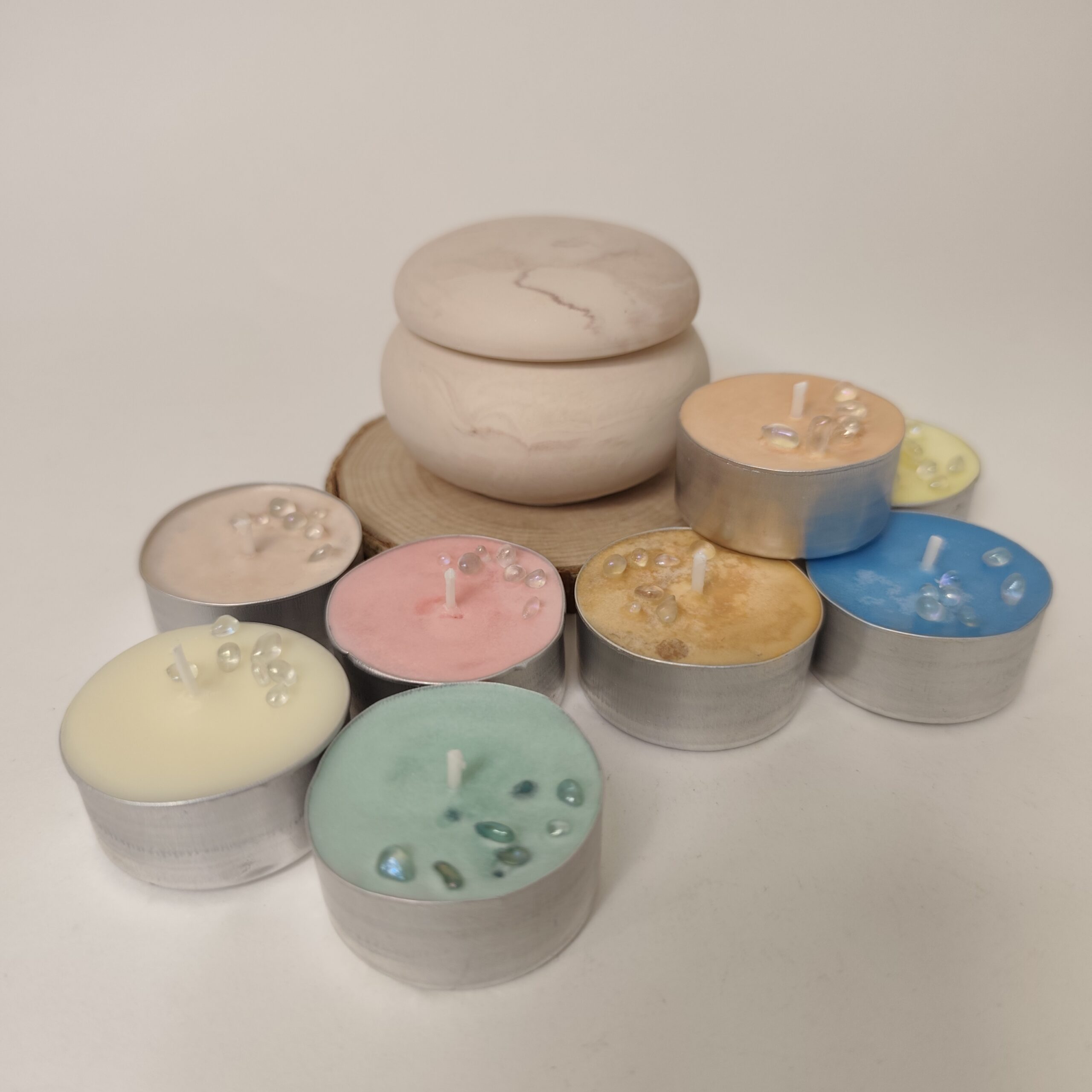 - 8 velas de té aromáticas: 4 dulces y 4 florales/frescos/herbales