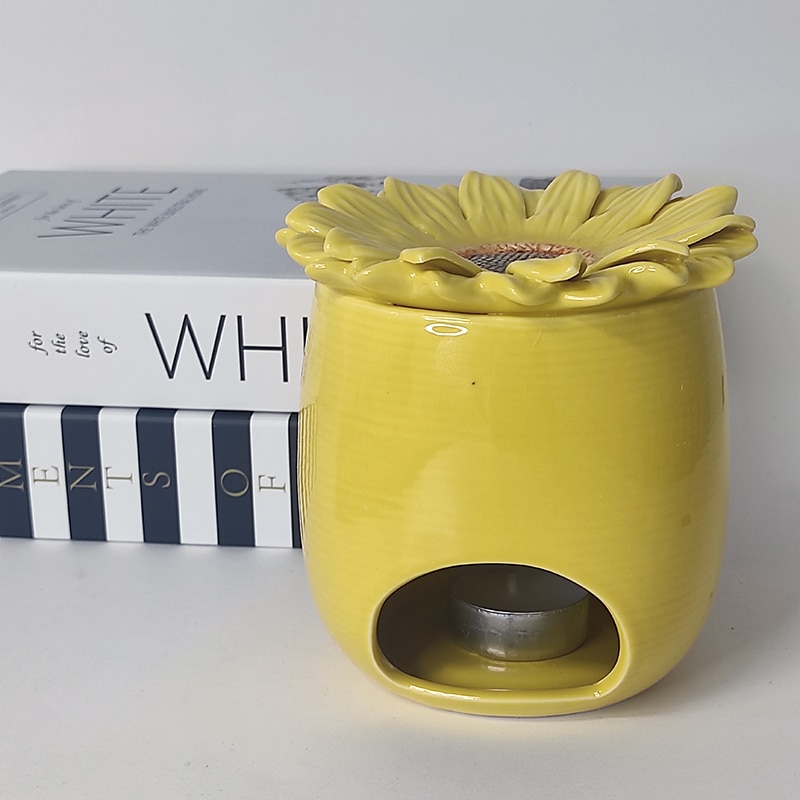 Ilumina cualquier espacio con nuestro quemador Girasol para wax melts. Este precioso diseño de Girasol es perfecto para añadir un toque de color a tu decoración y crear un ambiente acogedor y alegre.