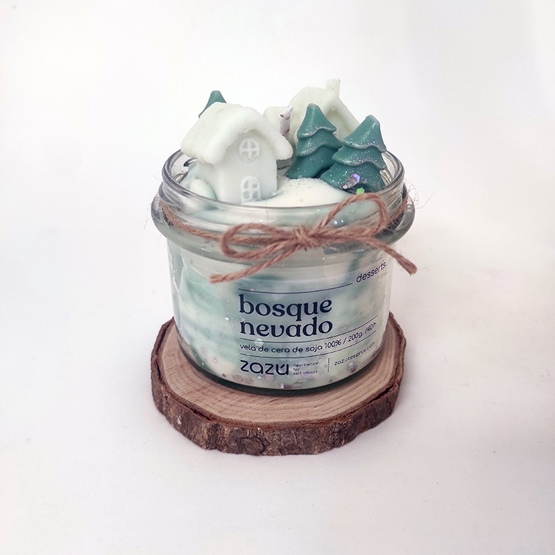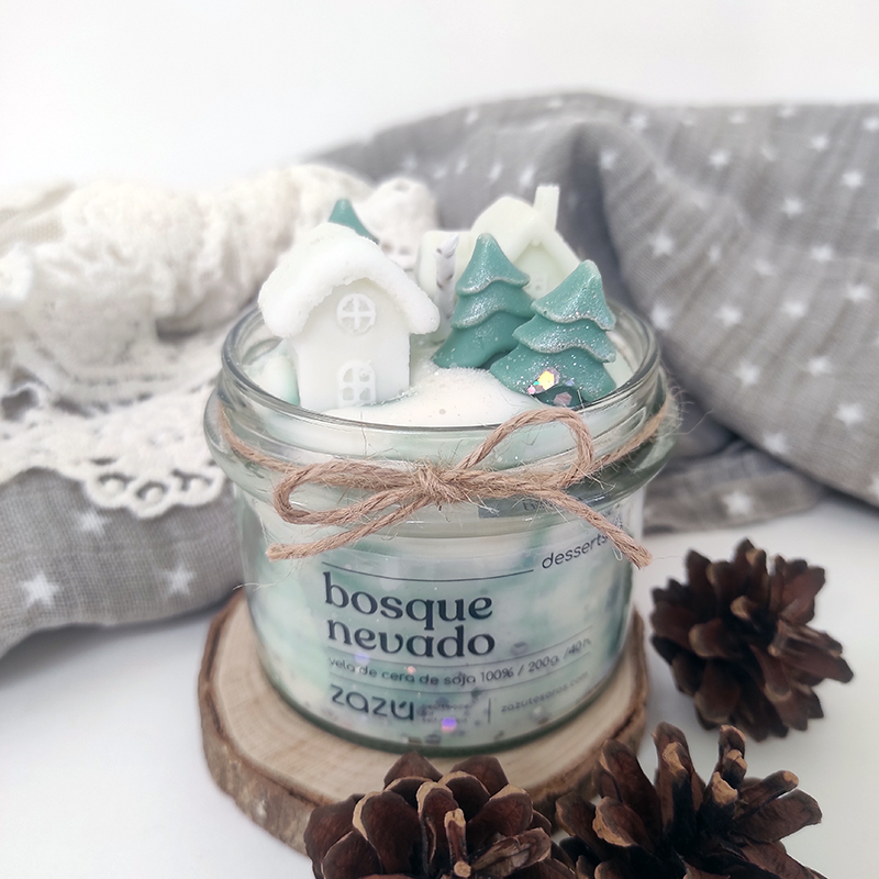 Vela Aromática Bosque Nevado hecha a mano con cera de soja 100% natural.