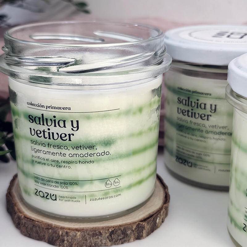 Salvia y Vetiver. Un aroma herbal con una base cálida y terrosa que invita a bajar el ritmo desde el primer momento. La salvia aporta una sensación limpia y fresca, mientras que el vetiver añade profundidad y un toque seco envolvente.