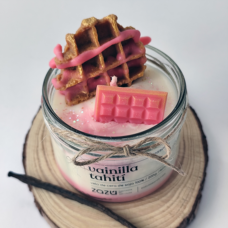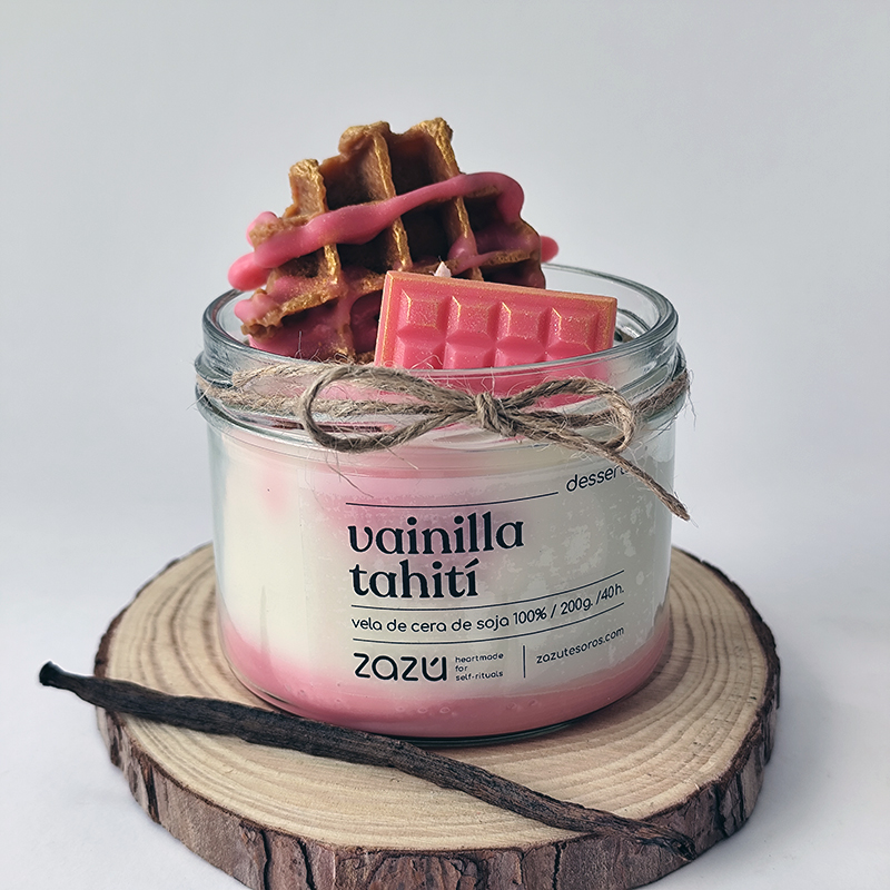 Vela postre Vainilla, hecha de cera de soja 100% natural.
